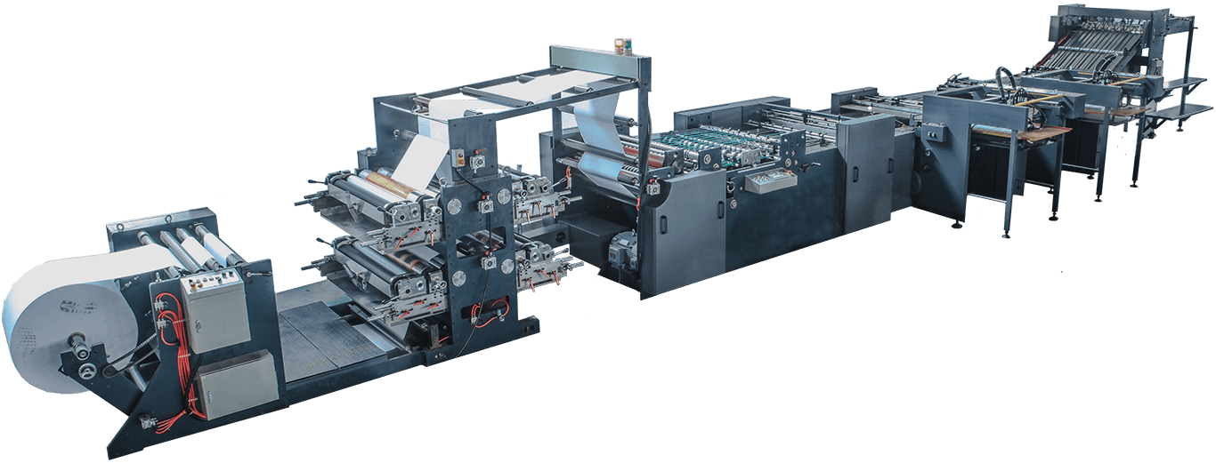 纸卷重量承载1000KG ,印刷部选用整体铸件结构,陶瓷网辊及封闭刮刀机构和金属网纹辊传墨机构可选择使用。内芯页码尺寸更换及裁切尺寸变化可通过同步齿轮的更换而迅捷改变。是生产各种中高档薄本、信笺、练习本、账册等纸制品的理想机械。